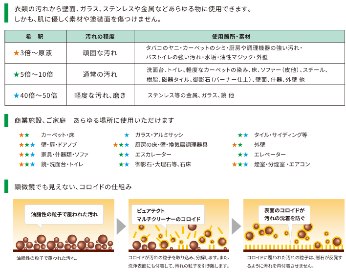 植物性多目的洗浄液ピュアテクトマルチクリーナーは、